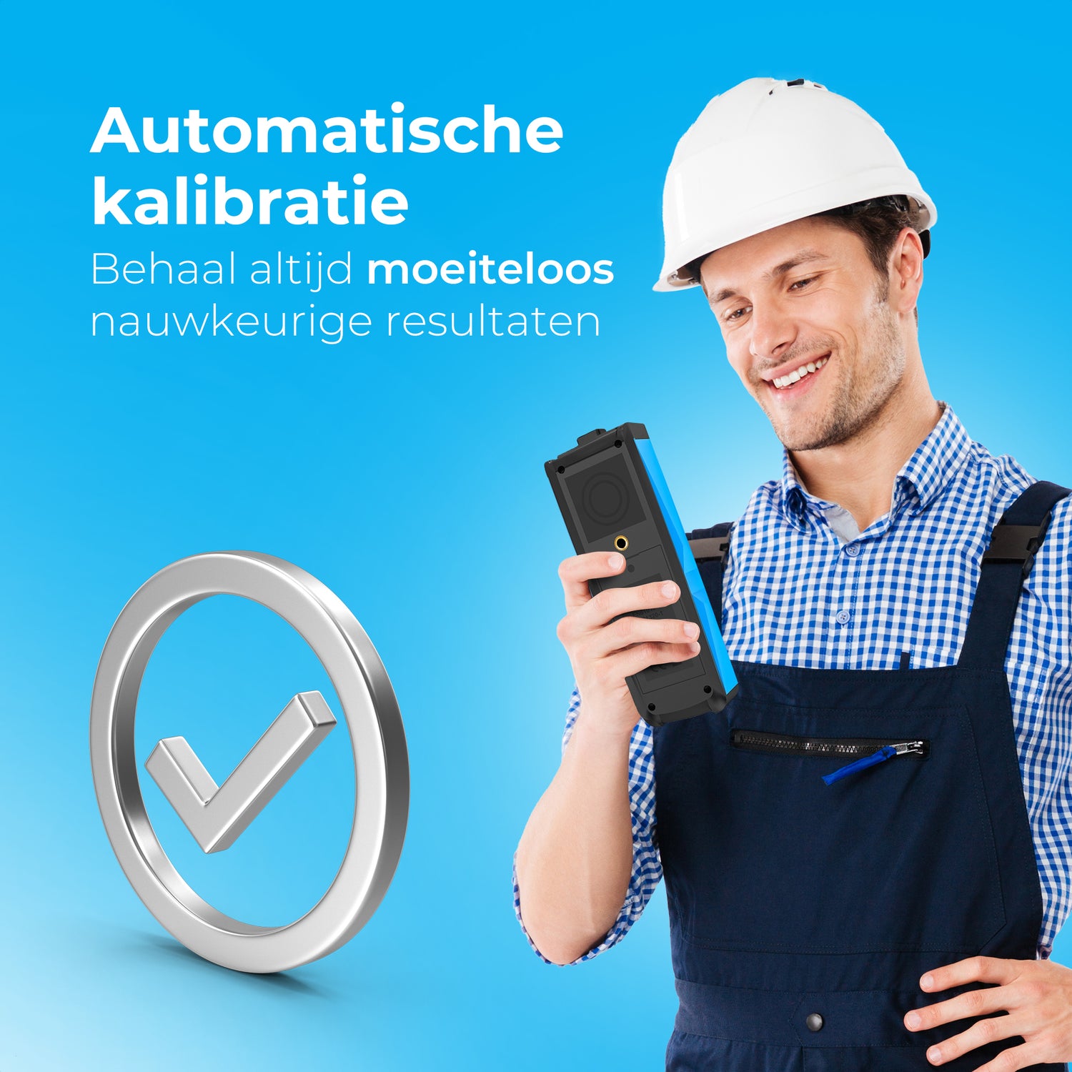 Met één druk op de kalibratieknop stelt de meter zichzelf automatisch perfect af. Zo begin je altijd met een betrouwbare nulmeting — snel, eenvoudig en zonder gedoe, voor maximale meetnauwkeurigheid.