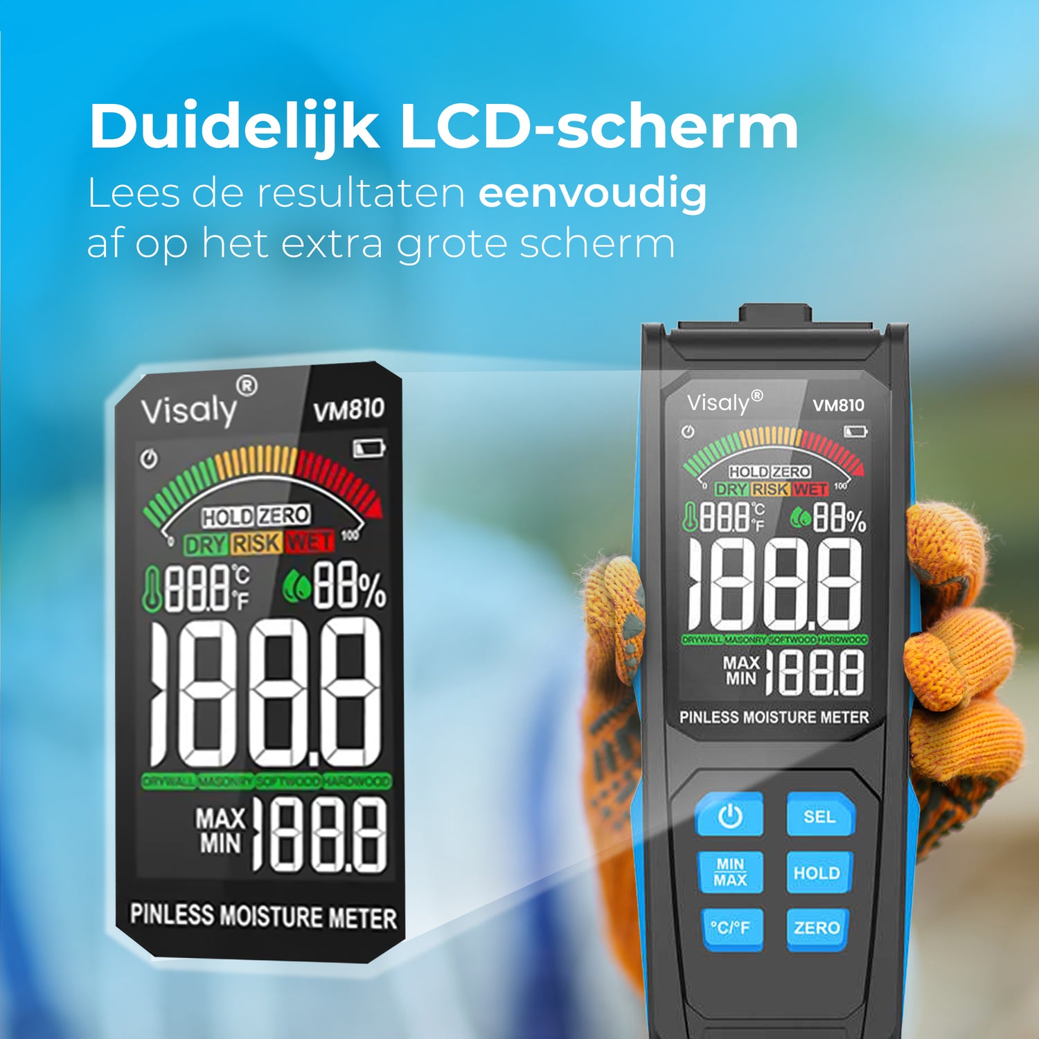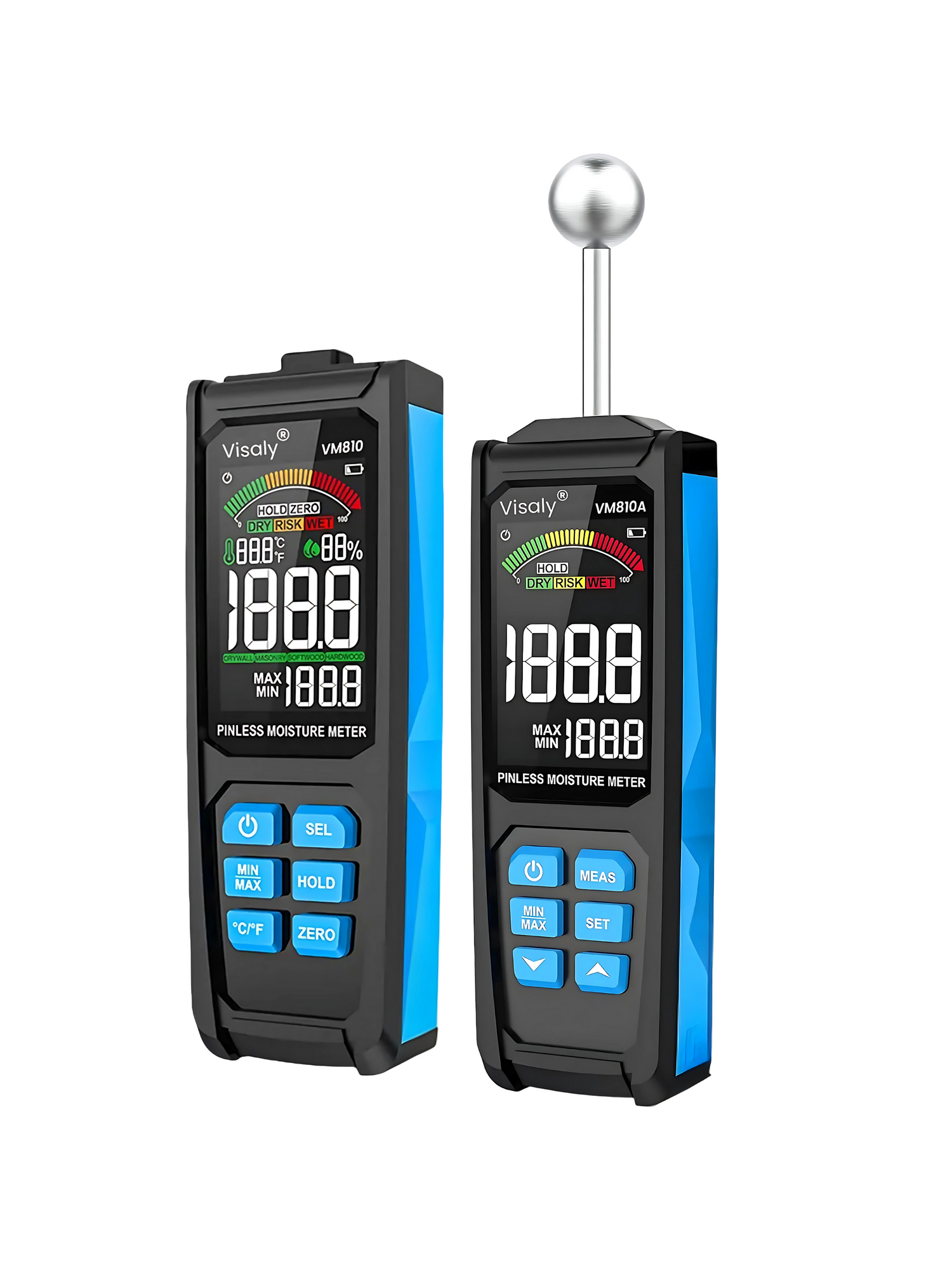 Ontdek de kracht van onze pinloze vochtmeters: de VM810 en VM810A. Dankzij de nieuwste sensortechnologie meten ze razendsnel en nauwkeurig zonder oppervlakken te beschadigen — ideaal voor wie zekerheid wil zonder sporen achter te laten.